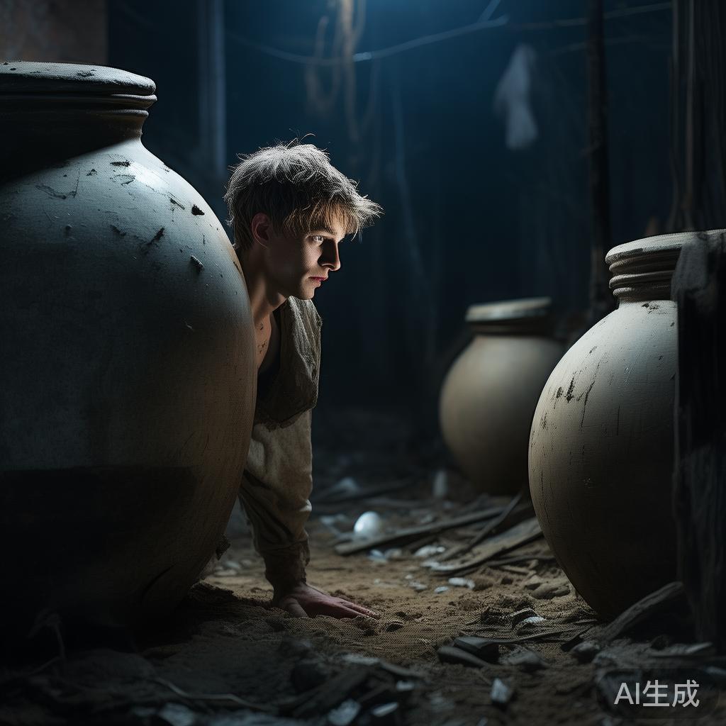 然而,街上传来急促的马蹄声,紧接着就是 banging 的敲门声。老头心里慌得不行,顾不得多说,赶紧把黄巢领进后院,将他放进一个醋缸里,喃喃说道:“客官,先委屈一下!”屋外,十几个官兵闯了进来,满嘴威胁,老头坚决否认藏有异客。最后,他们虽然翻了一番,却没发现黄巢,搞得整个院子乱七八糟,碎瓷片到处都是。